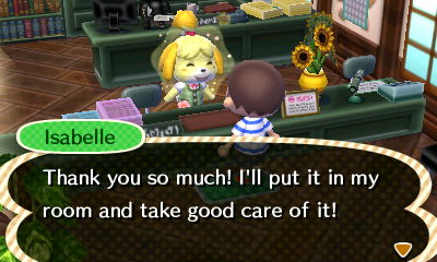 That's not to say that I expect to spend years playing New Leaf like some dedicated players did, but I can certainly see myself playing it for some time and getting a lot of enjoyment out of it. I've been playing daily for the last eight days and I really delight in the soothing gameplay and the mellow, nearly mundane atmosphere. I'm very much a routine person, and the idea of getting a small dose of New Leaf every single day for a while is a very pleasant idea indeed. I found out that I enjoy the game more if I play it for short periods of time, and the real-time feature and overall slow pace definitely encourage an incremental way of playing rather than a greedy one in which the player gorges on hours of play at once.