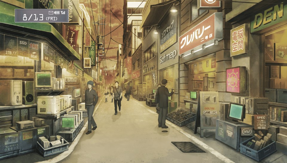 That’s right, disappointment. Steins;Gate basically failed to live up to my expectations and transformed over time into something that I didn’t quite enjoy. Of course, you could blame me for having expectations in the first place, but here’s the thing: the game itself planted these expectations in me. The truth is that I had no preconceived idea about Steins;Gate before I started playing it; however, after being fed the delicious data-laden four exposition chapters, my expectations regarding the narrative went off the roof. I pictured a convoluted storyline with branching paths completing each other à la 999, rife with plot twists and dramatic time paradoxes, all peppered with mind-bending concepts and dripping with irony and dark humour.